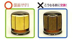 オイルフィルタはエンジンオイルの中の大きな不純物(鉄粉、燃えカスなど)をろ過し、エンジンオイルをきれいにします。