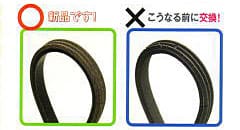 磨耗や経年変化で劣化したベルトは、すべりが発生し各補機類の正常な作動を妨げるので、安全な走行ができなくなることがあります。破断した場合には、走行不能となります。