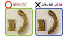 磨耗限界を超えて使用した場合、摩擦材がなくなると同時に突然ブレーキが利きにくくなり、ブレーキドラムも破損します。