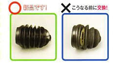ドライブシャフト・ダストブーツが破損すると、内部のグリースが流れ出し、またベアリング部分に水やホコリが侵入しベアリングの潤滑を妨げ、錆の発生、最悪破損にまでいたります。